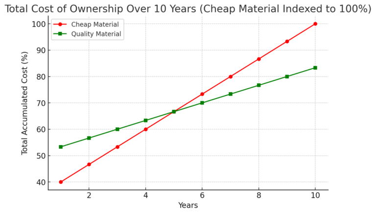 Izbira najcenejšega dobavitelja ali materiala pogosto prinaša kompromise, ki lahko vodijo do: